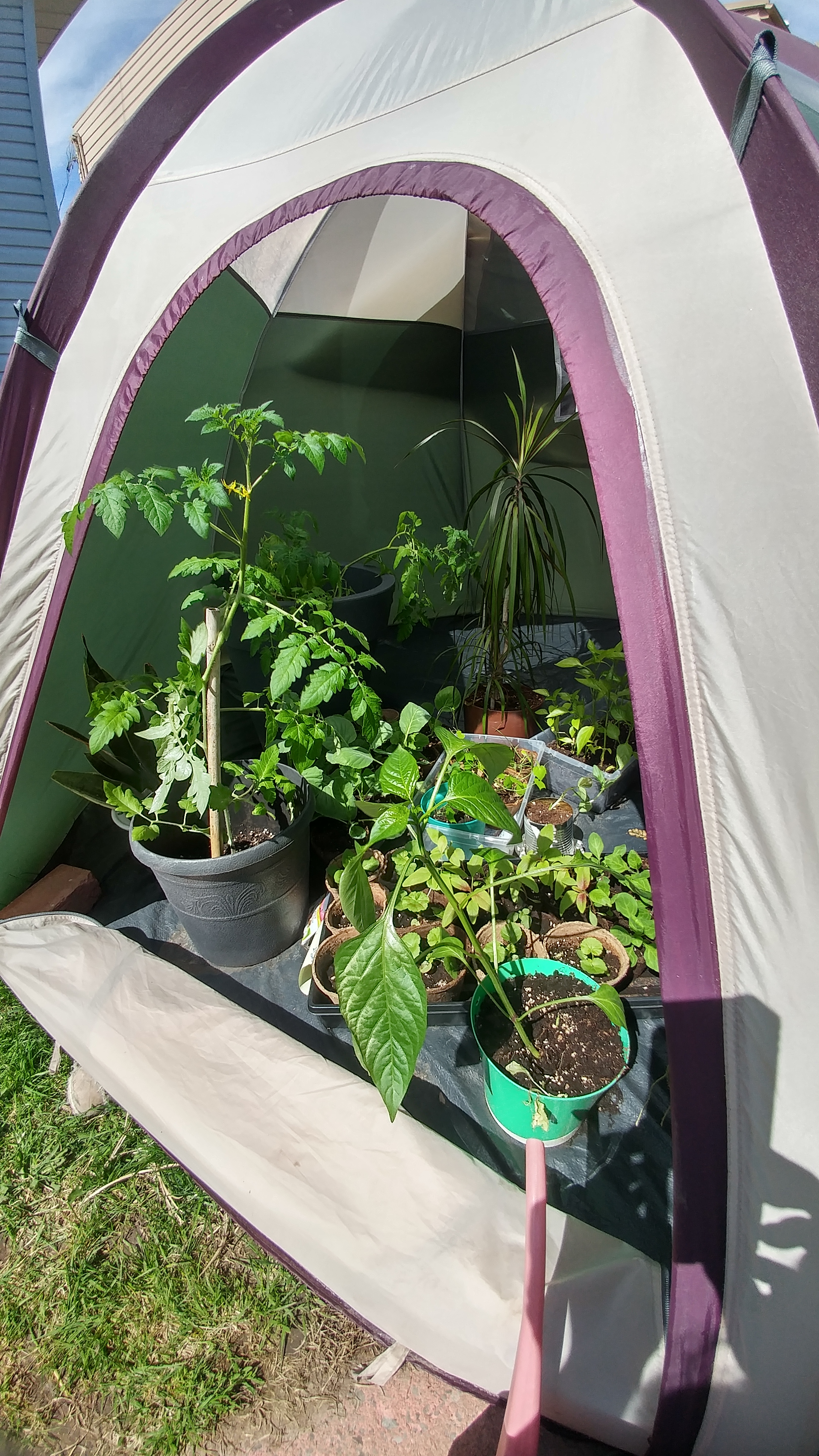 J ai pas de serre mais j ai eu une bonne idée, a date ça marche, j ai pris ma veille tente dôme que j ai monté dans la cour. Le jour j ouvre la porte et j enlève le double toit pour faire entré le plus de soleil et chaleur la nuit je ferme et remet le toit.
