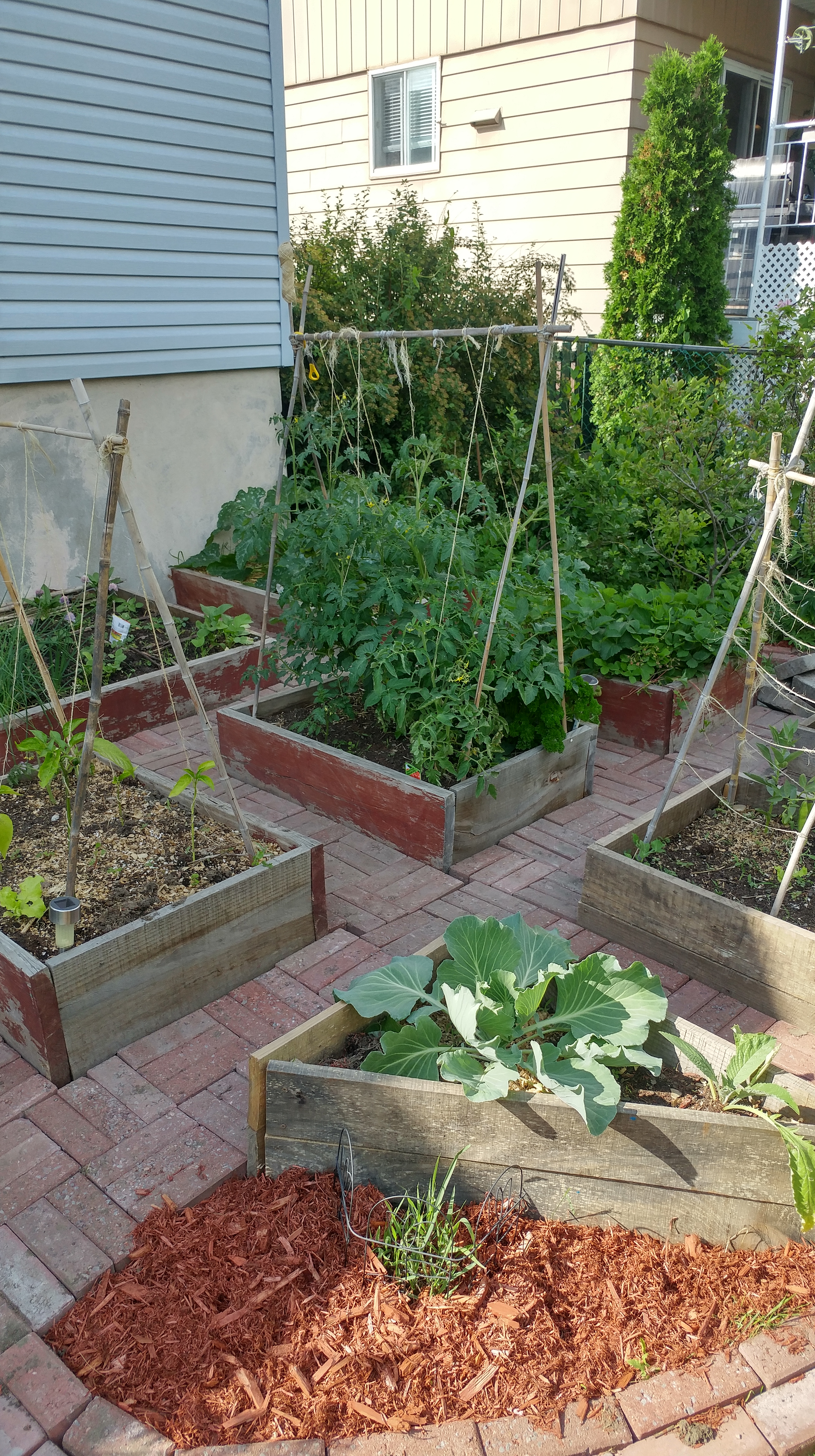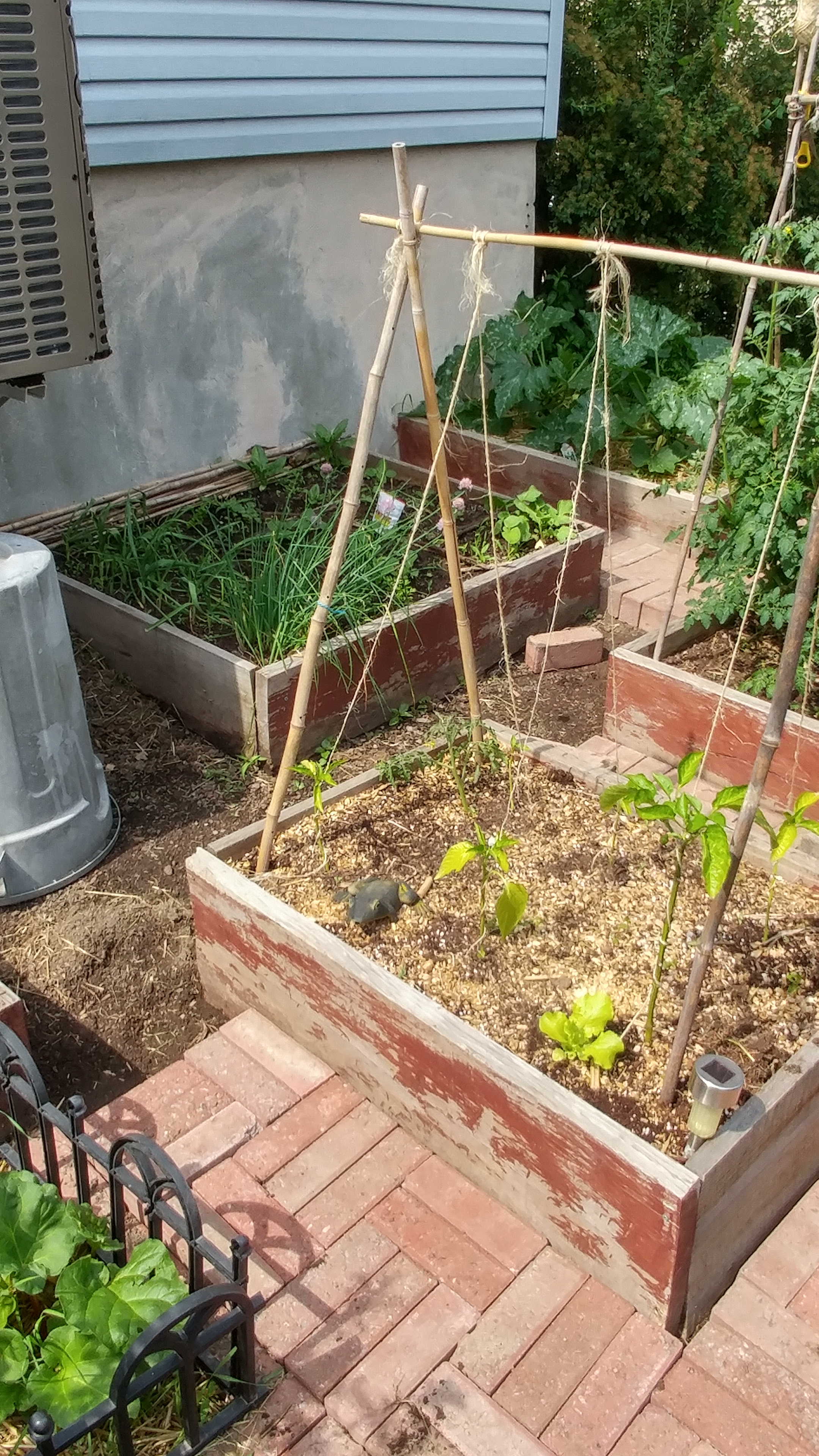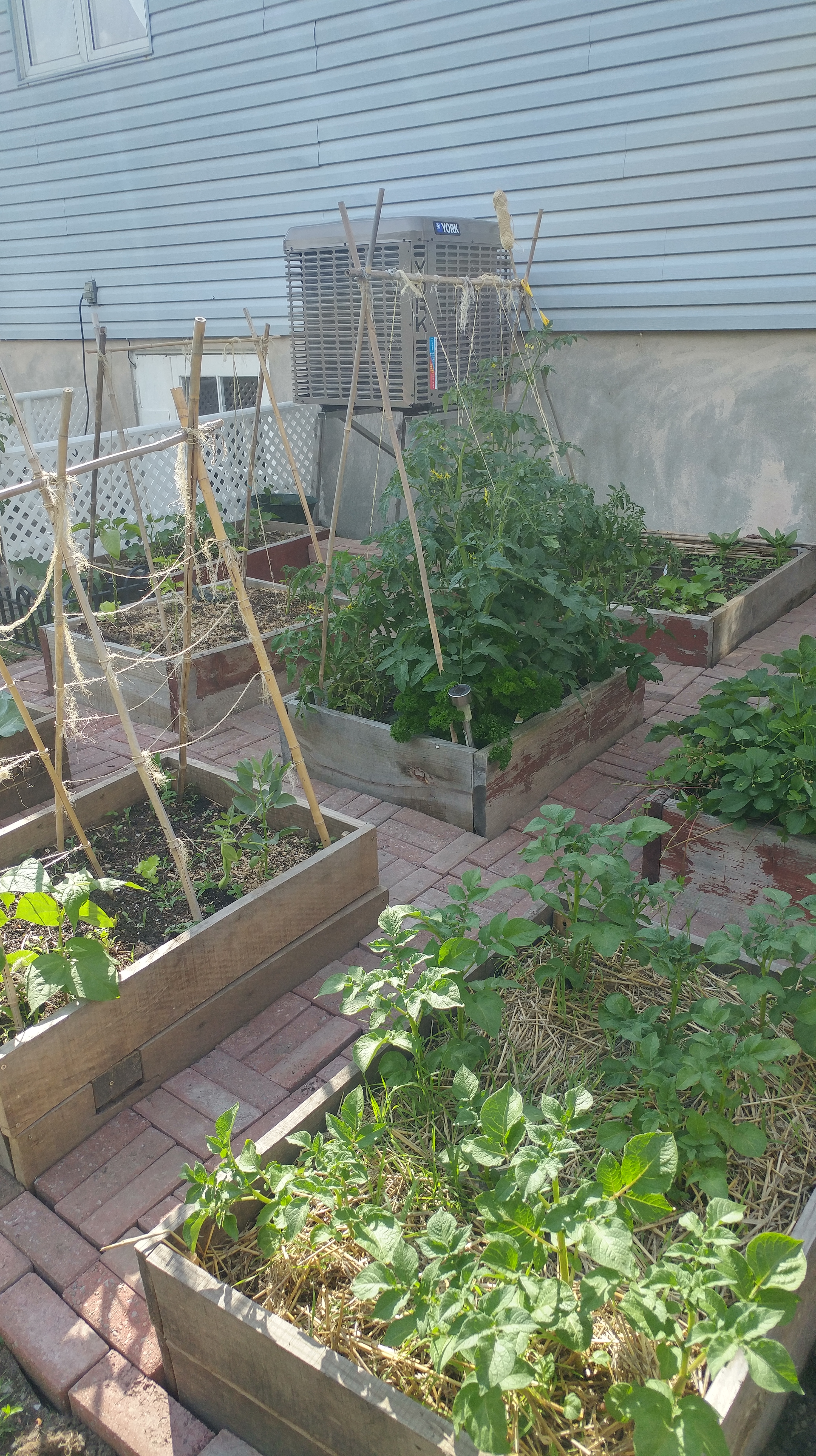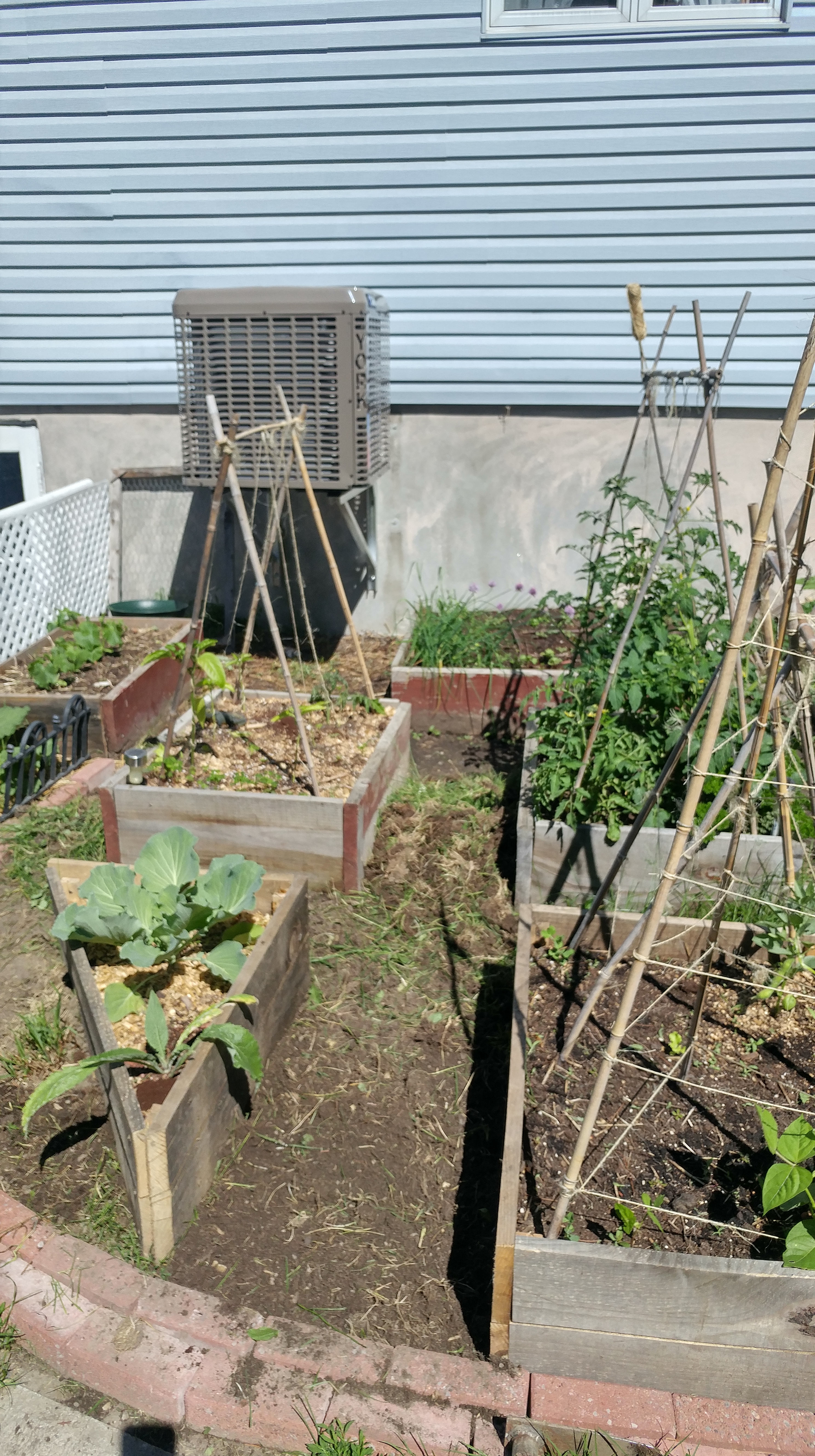 directement sur la terre que j’ avais mise à peu près au niveau, pour l instant les allez ne sont pas toutes a faites droites parce que mes carrés étaient déjà fait mais quand j aurais à changer les planches